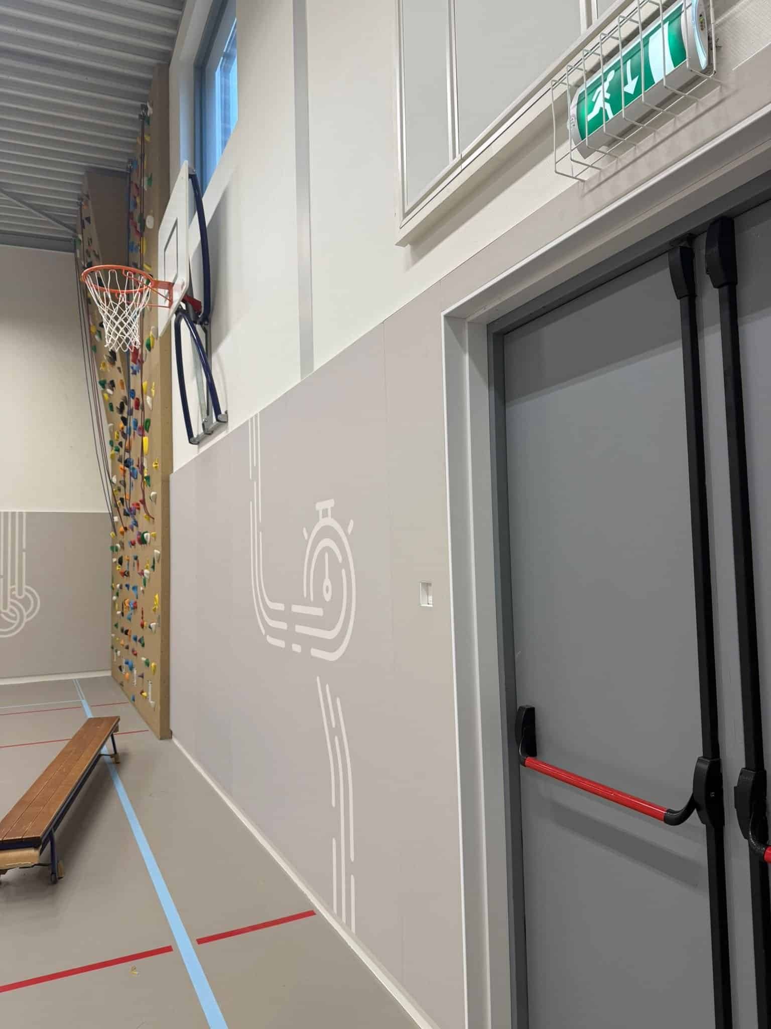 Stootvaste wandpanelen: harde vilten toplaag met geluidabsorberende kern, ideaal voor gymzalen.