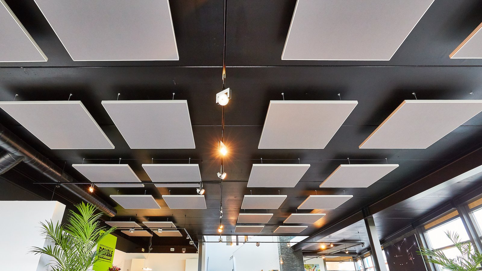Verbeter de akoestiek in retail en showrooms met geluidsabsorberende plafond- en wandpanelen, strategische indeling en stootvaste panelen voor een aangename winkelervaring.