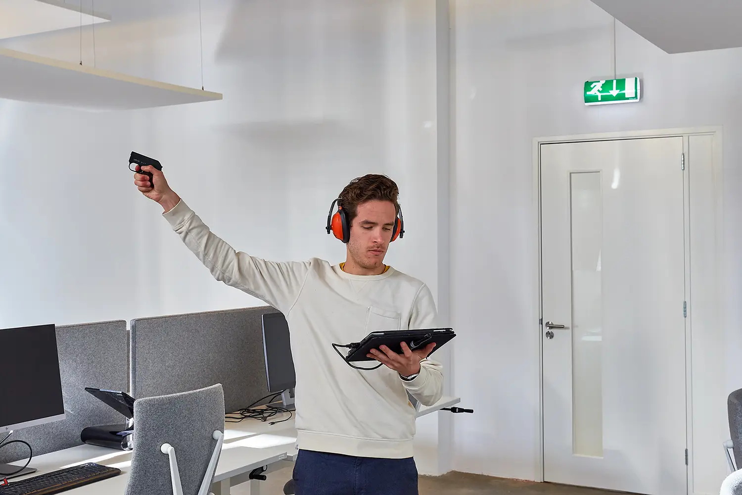 Het systeem simuleert vervolgens het effect van verschillende akoestische materialen, waarbij gecertificeerde waarden worden gebruikt om exact te berekenen hoe de nagalmtijd verandert wanneer specifieke materialen worden toegepast. Hierdoor ontstaat vooraf een helder beeld van het resultaat en van de oppervlakken die daarvoor nodig zijn. Omdat deze berekeningen volledig op de meting zijn gebaseerd, kunnen wij garantie geven op de te behalen nagalmtijd wanneer de geadviseerde oplossing volledig wordt uitgevoerd. Het advies is hierdoor transparant, realistisch en voorspelbaar.