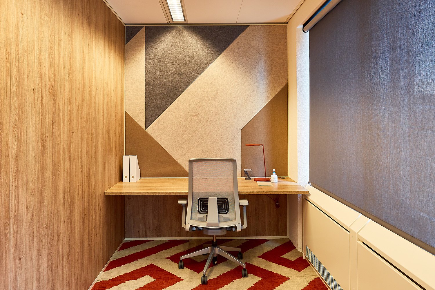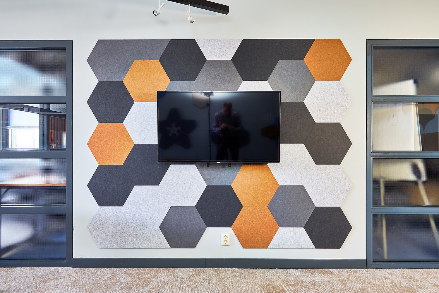 Geluidsabsorberende wandpanelen in een moderne kantoorkamer.