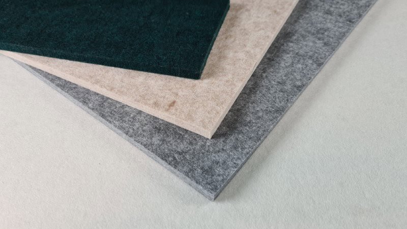 Akoestisch vilten absorptiemateriaal met een densiteit van 212 kg/m3, dikte 0,9 cm.