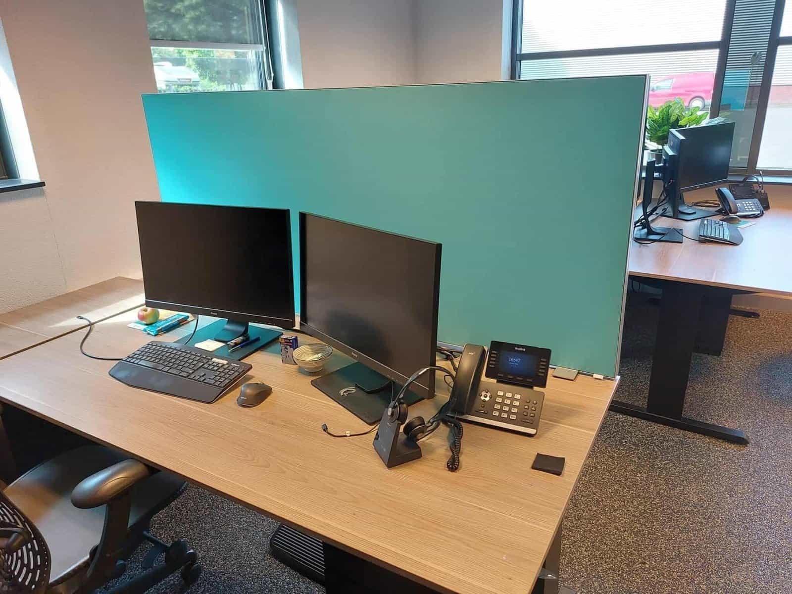 Bureaupaneel met afbeelding. Combineer akoestiekverbetering met artwork.