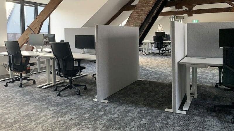 Akoestisch goede werking, geschikt voor algemene akoestische verbetering / spraakverstaanbaarheid, rust en minder geluidsoverlast tussen bureau’s.